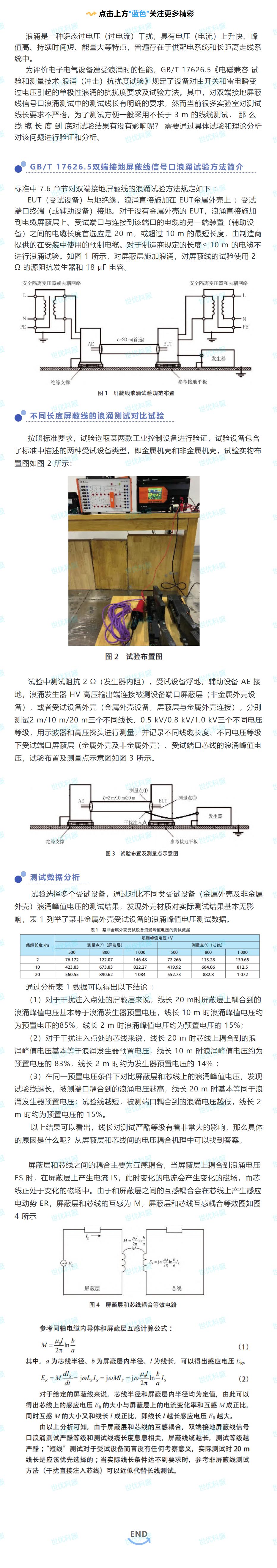 屏蔽線長度對(duì)浪湧測試 結果的影響